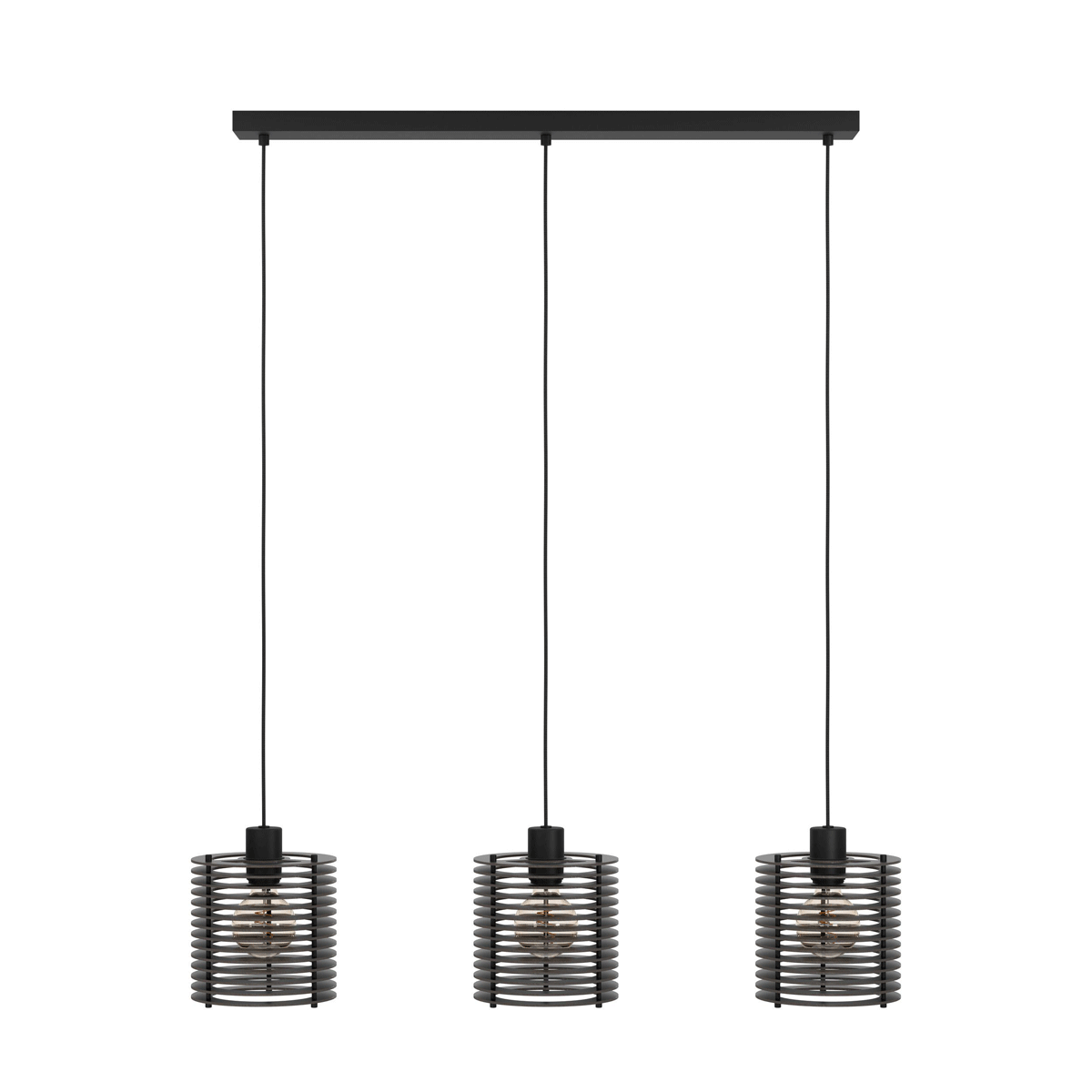Enhance your space with the Segovia pendant light, featuring a sleek elongated black metal canopy and three stylish lampshades constructed from black slats. This design creates stunning light and shadow effects that add depth and character to your living or dining room. Designed for modern interiors, it effortlessly complements contemporary décor while offering practical illumination with three E27 lamp holders. Please note, bulbs are not included, giving you the freedom to choose your preferred light type. Transform your room with this elegant pendant and enjoy a sophisticated lighting solution that elevates your home ambiance.