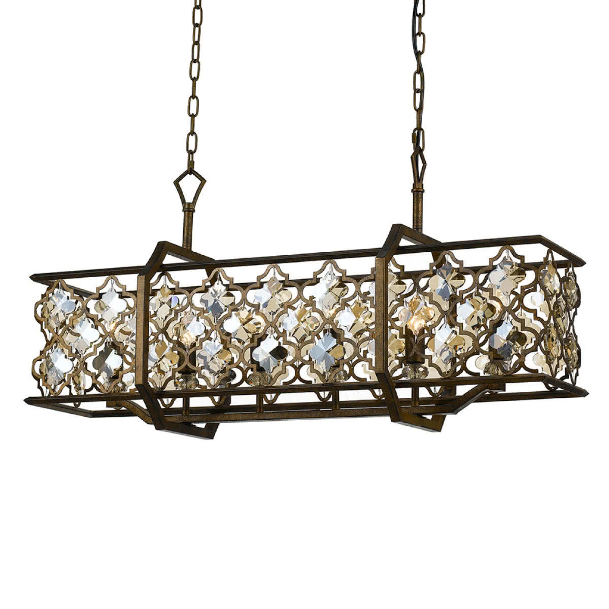 The light is designed to accommodate six E14 lampholders with a maximum of 25W each, allowing you to select your preferred bulb colour temperature for tailored ambience. Its unique rectangle shape adds a modern touch while the crystal details capture and reflect light beautifully.