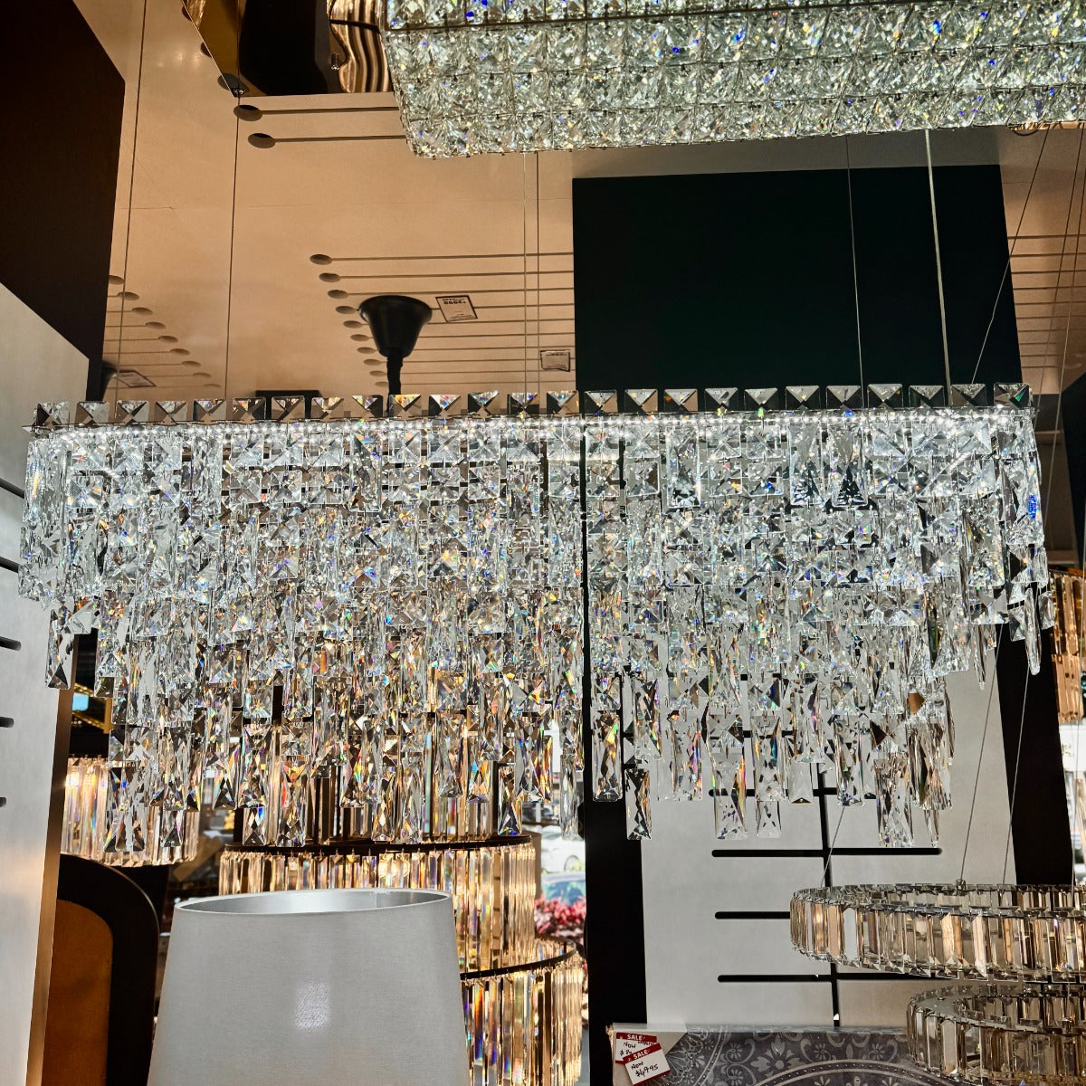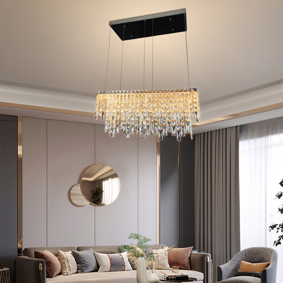 Made with fine crystals, this fixture radiates sophistication, making it a striking addition to any room.
