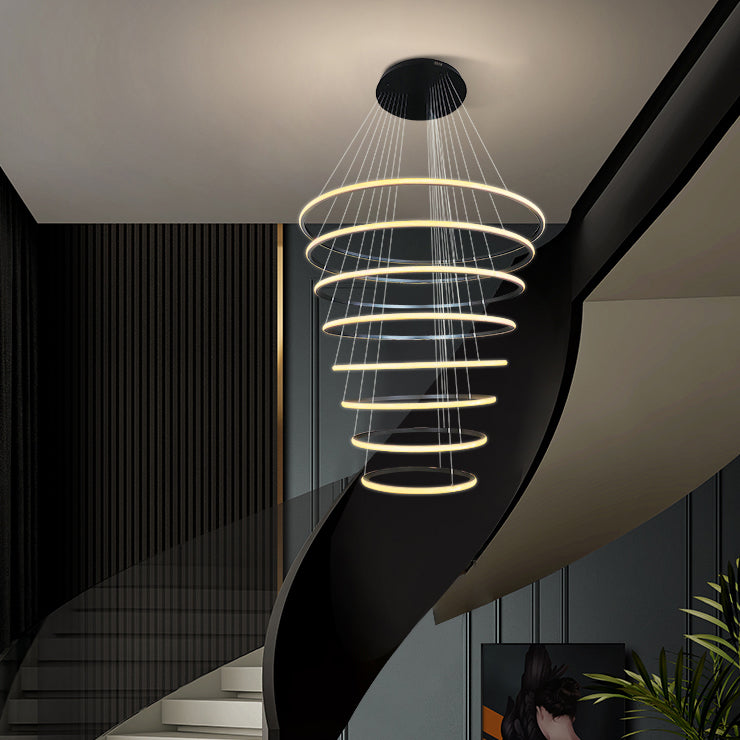 The Marcello 8 Ring Pendant Light delivers versatile LED lighting with a unique tri-colour design, enhancing contemporary spaces with adaptable illumination and style.