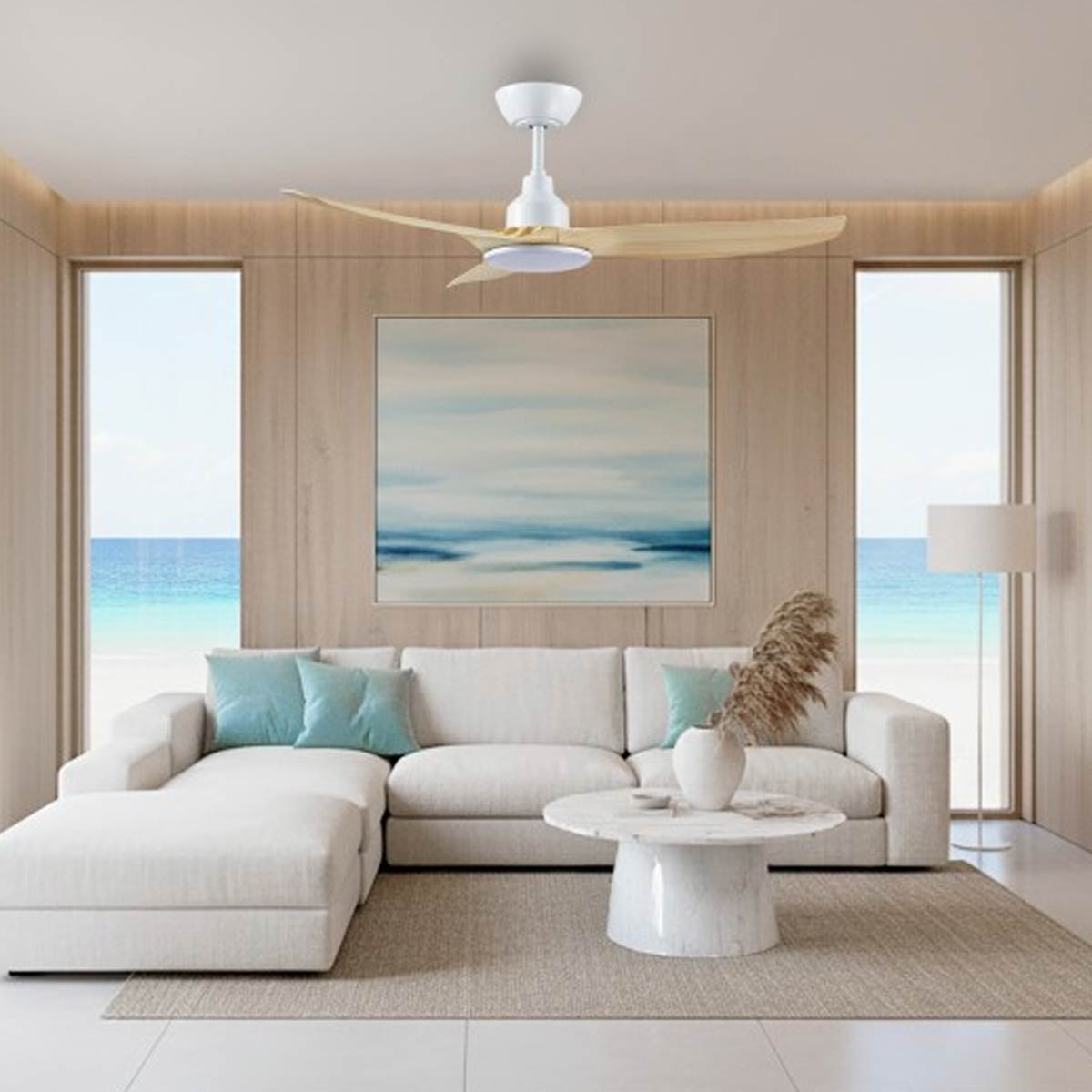 DescriptionThe all new Skyfan from Ventair is designed to become the ultimate DC ceiling fan at a great price point. The Skyfan DC fan is equipped with a range of technology upgrades that sets it apart from the rest. With an all-new intelligent DC motor, Skyfan is up to 75% more energy efficient yet produces a very impressive airflow. This new DC motor is also extremely quiet, making it an ideal companion for bedrooms. Glass fibre composite blades are featured in the new Skyfan for added strength and durability. The included new LCD remote control provides a host of functions including speed settings, eco & sleep modes, and 1-12 hour timer. The Skyfan DC from Ventair can be used in both indoor and outdoor undercovered locations. Available in 3 sizes and light models, the Skyfan is ready to handle every situation. This model comes with a 20W LED light with tri-colour technology - allowing users to switch between 3000K Warm White, 4000K Cool White, and 5000K Daylight. The LED light is 5 step dimmable and produces up to 1800 lumens output. Smart WiFi Control (Tuya) Optional Unlock smart WiFi capabilities and connect your Skyfan with Google Home and Alexa for the ultimate experience. The Smart WiFi USB dongle can be easily installed by yourself and pairs with the "Smart Life - Smart Living" Tuya app.
