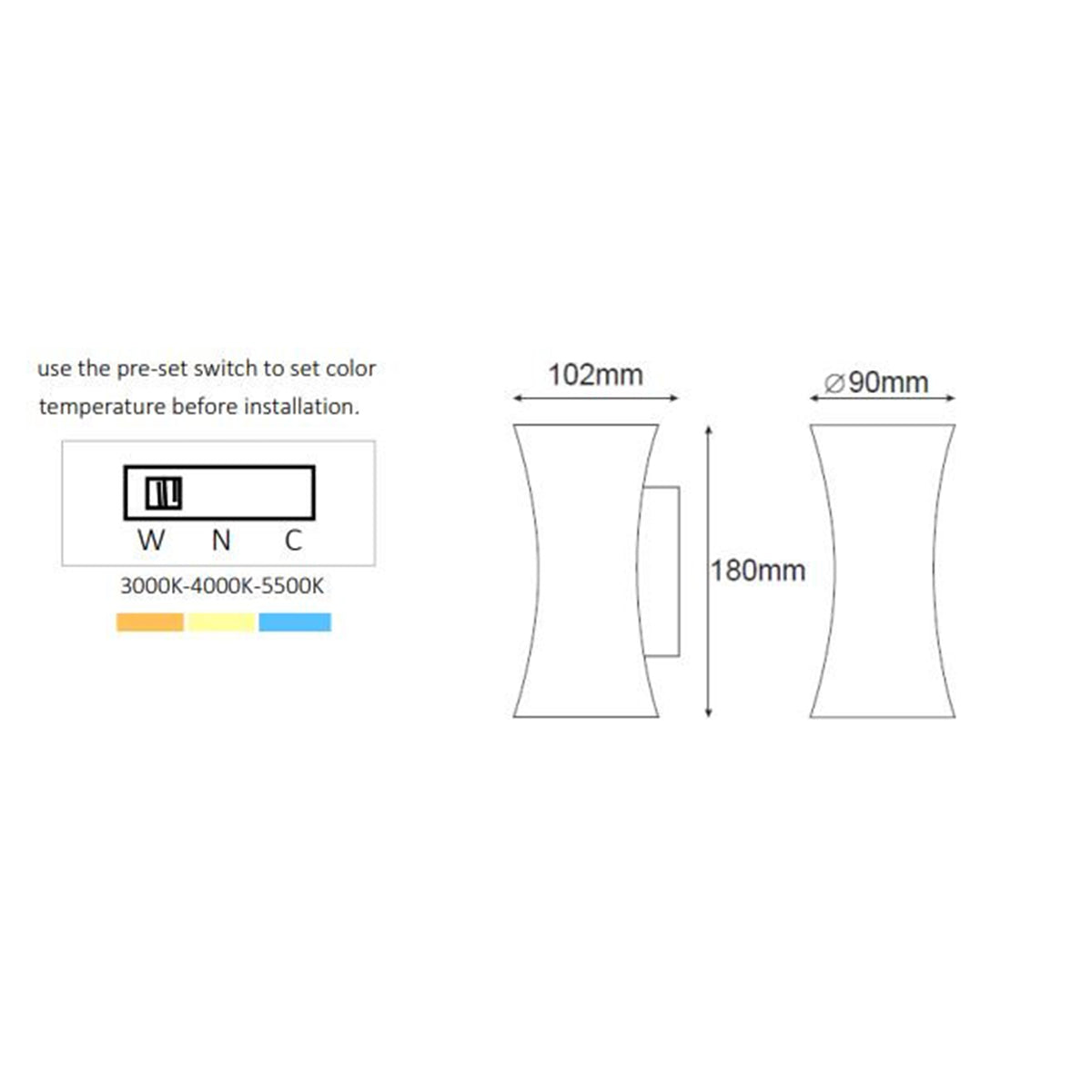 This light features two 5W LEDs and three adjustable colour temperatures—3000K, 4000K, and 5500K—providing lighting that suits any mood.