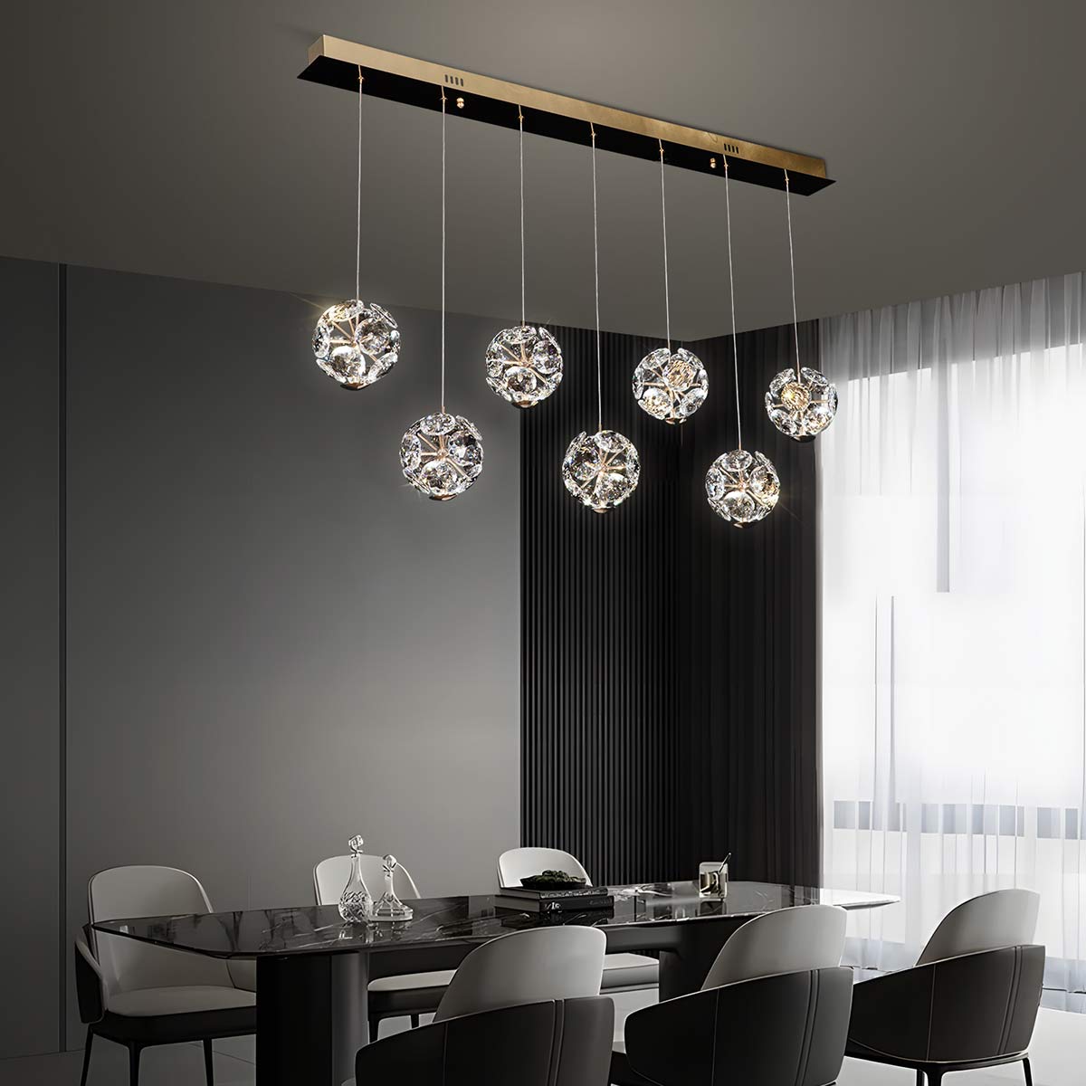 Introducing the Delessi Astrid Crystal Ball pendant light, a stunning addition to your home. Featuring seven intricately designed crystal balls, this modern fixture transforms dining areas into captivating spaces that invite conversation and delight.
