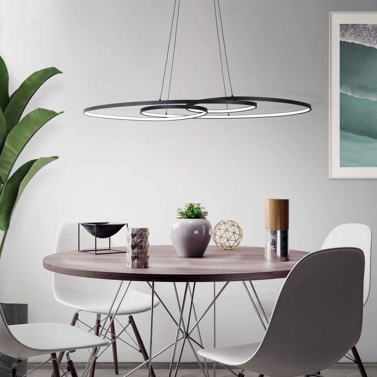 Brighten your living space with the Gianella Swirl Halo LED pendant light, designed to offer a warm 3000K glow that creates a welcoming atmosphere. This 38W light source delivers high efficiency with 4400 lumens, making it both energy-saving and powerful. Its modern abstract design with integrated LED globe complements contemporary interiors beautifully, serving as a striking feature in open plan areas. Fully dimmable, it allows customised lighting moods to suit any occasion. Easy to install and IP20 rated, this pendant blends style and function seamlessly. Enhance your home with this elegant and practical lighting solution today.