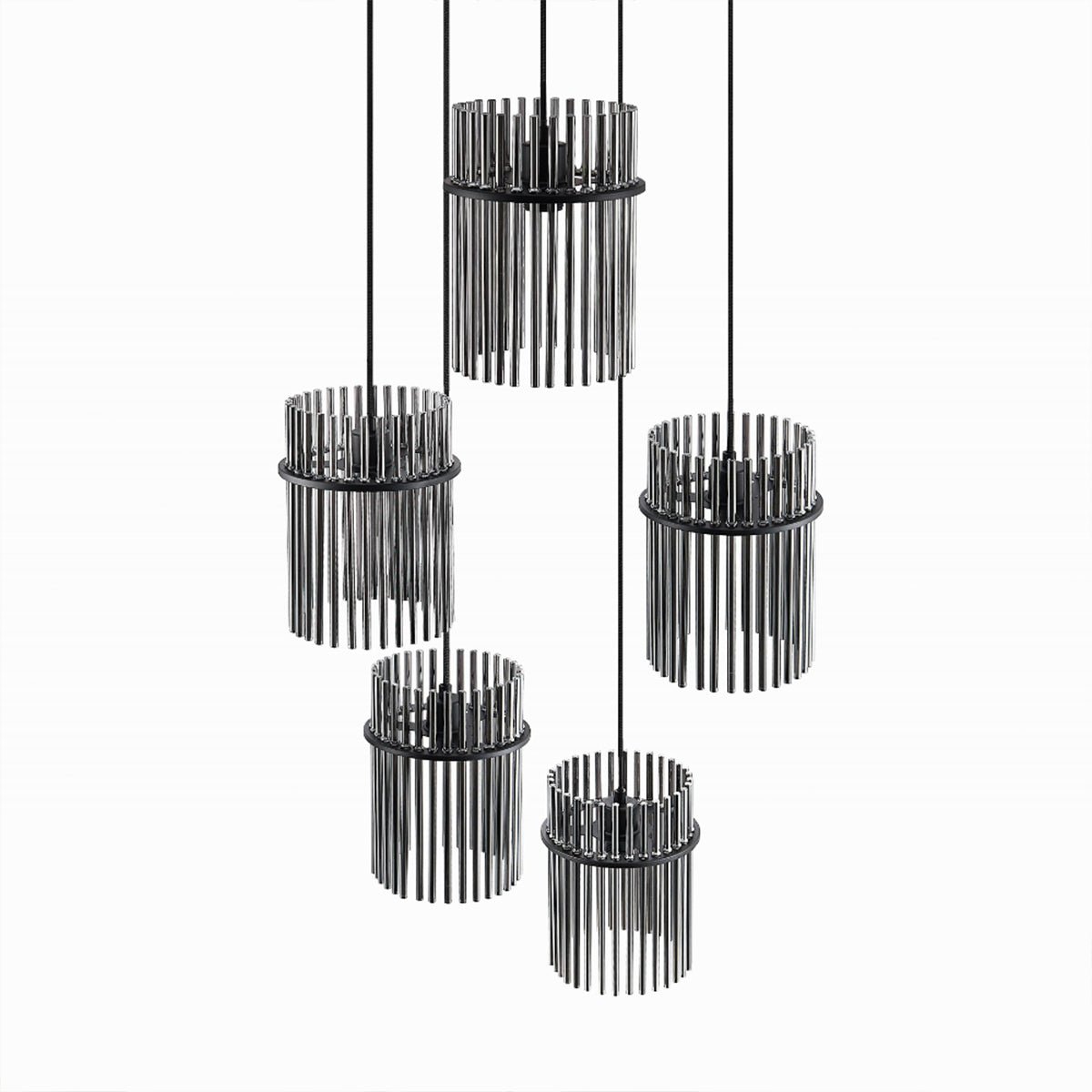 The Quilo pendant light combines smoke glass shades with a black finish to provide sophisticated illumination and adaptable styling for contemporary indoor spaces.