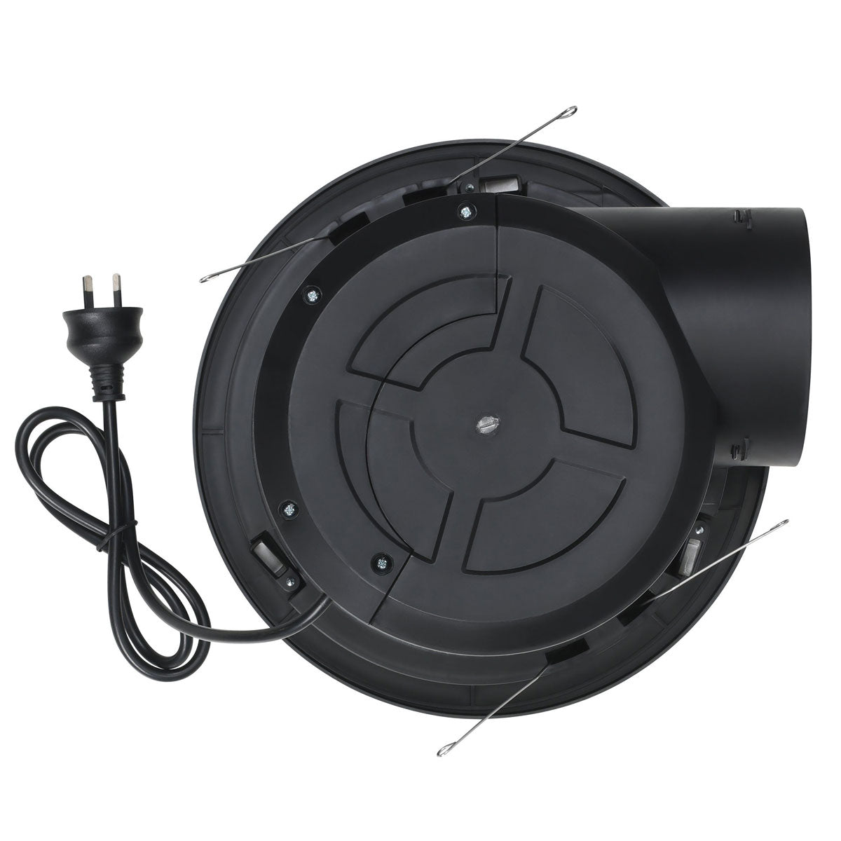 Featuring a powerful motor, it efficiently ventilates spaces to keep air fresh and comfortable. The round design with a black finish offers a modern look that complements various interior styles without overpowering the aesthetics.