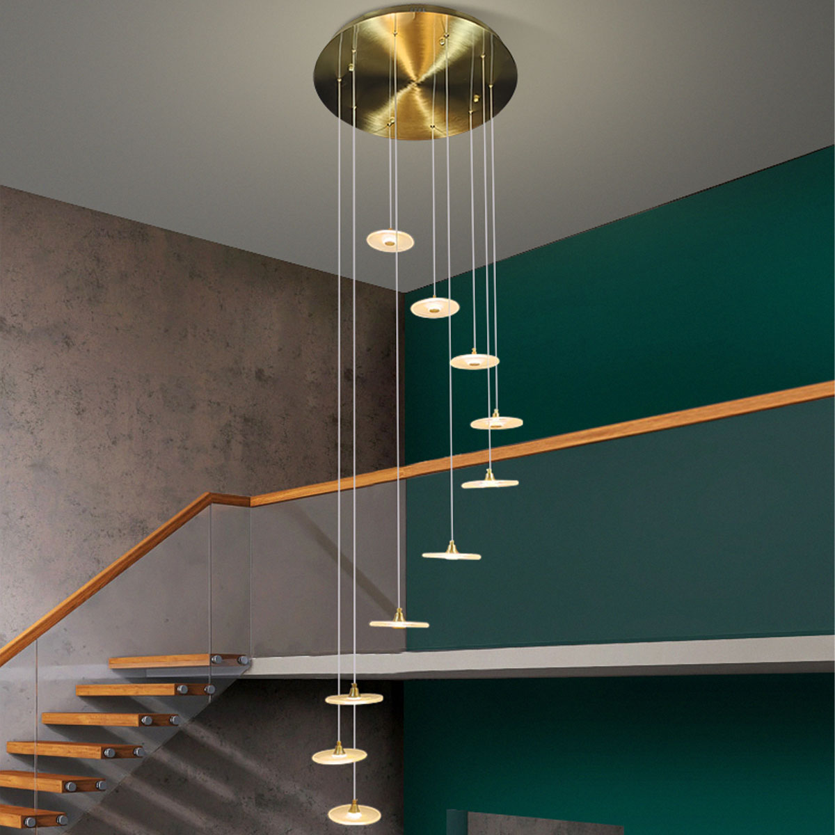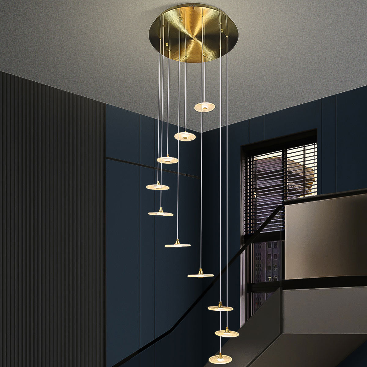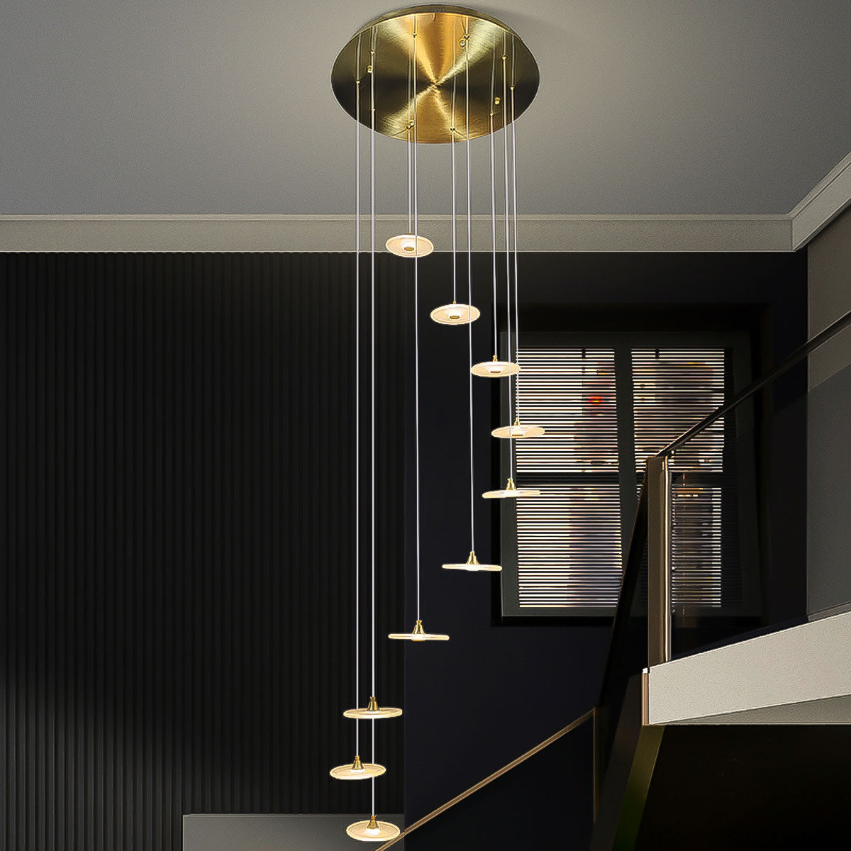 Sokyo 10 LED Hand Blown Glass Disks Pendant Light - Gold/Frost